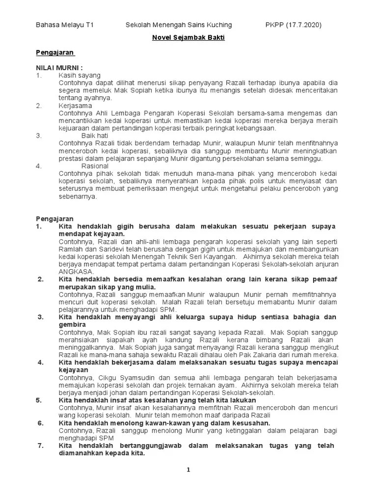 Tema dan persoalan (novel tingkatan 1) tema semangat bekerjasama dalam kehidupan warga sekolah untuk mencapai . Novel sejambak bakti pdf novel sejambak bakti nilai novel tingkatan 1 1 amanah contohnya ahli ahli lembaga pengarah koperasi sekolah menengah teknik course . Sinopsis, watak dan perwatakan, tema, persoalan, nilai, pengajaran, latar masa, latar tempat : Sinopsis bab 1, 2, 3 (novel tingkatan 3) (zailiani taslim) sinopsis bab 1 kematian ayahnya haji badrul tel. Menengah teknik pertanian seri kayangan.
